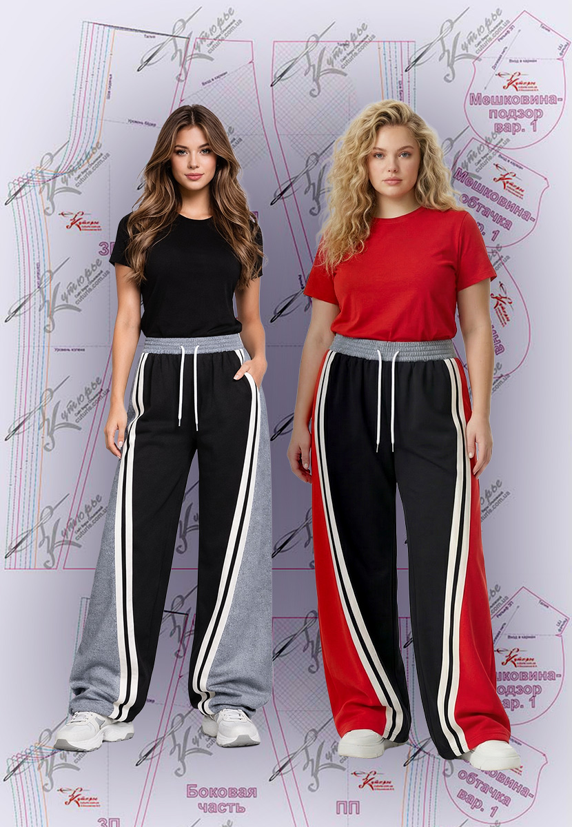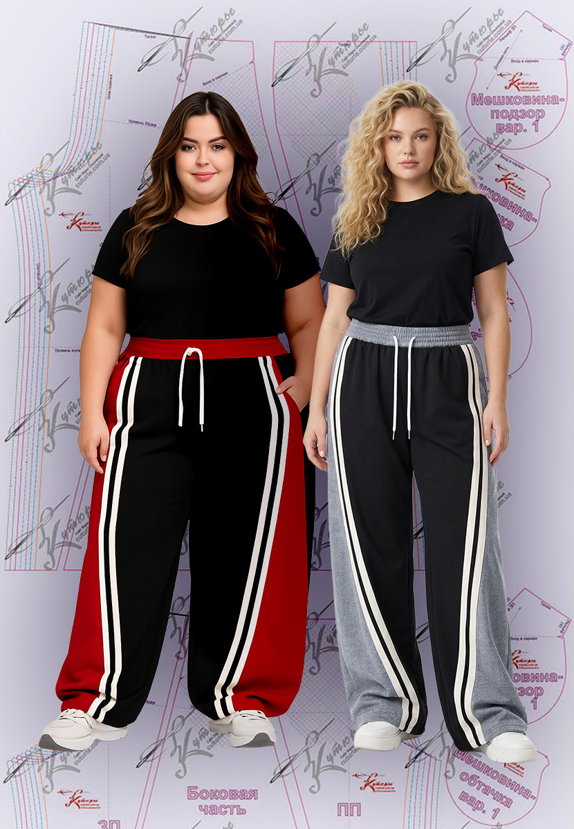 Выкройки брюк с лампасами "диагональный оверсайз"