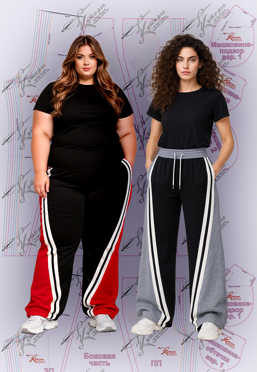 Инструкция к выкройкам брюк с лампасами "диагональный оверсайз". Для полных и для стройных. Раскрой и пошив в домашних условиях.