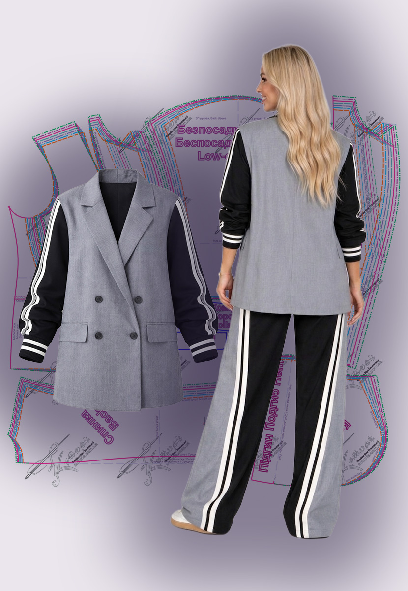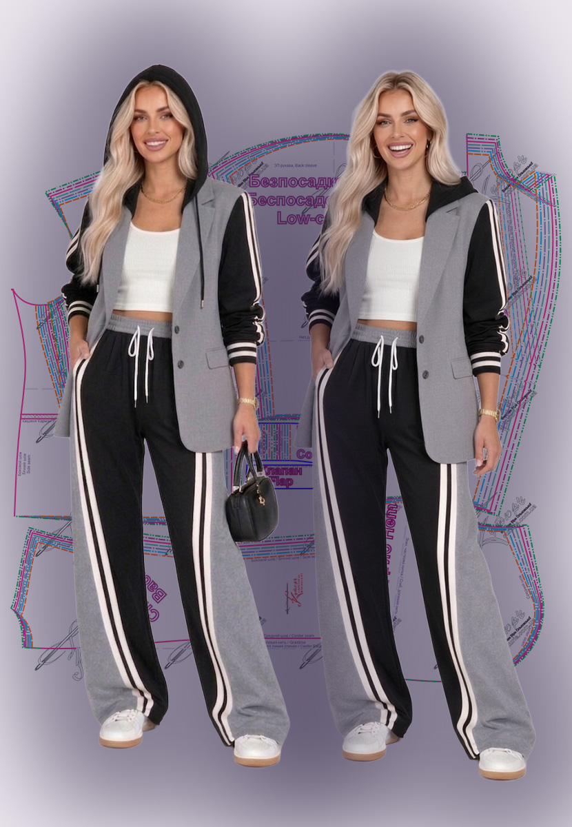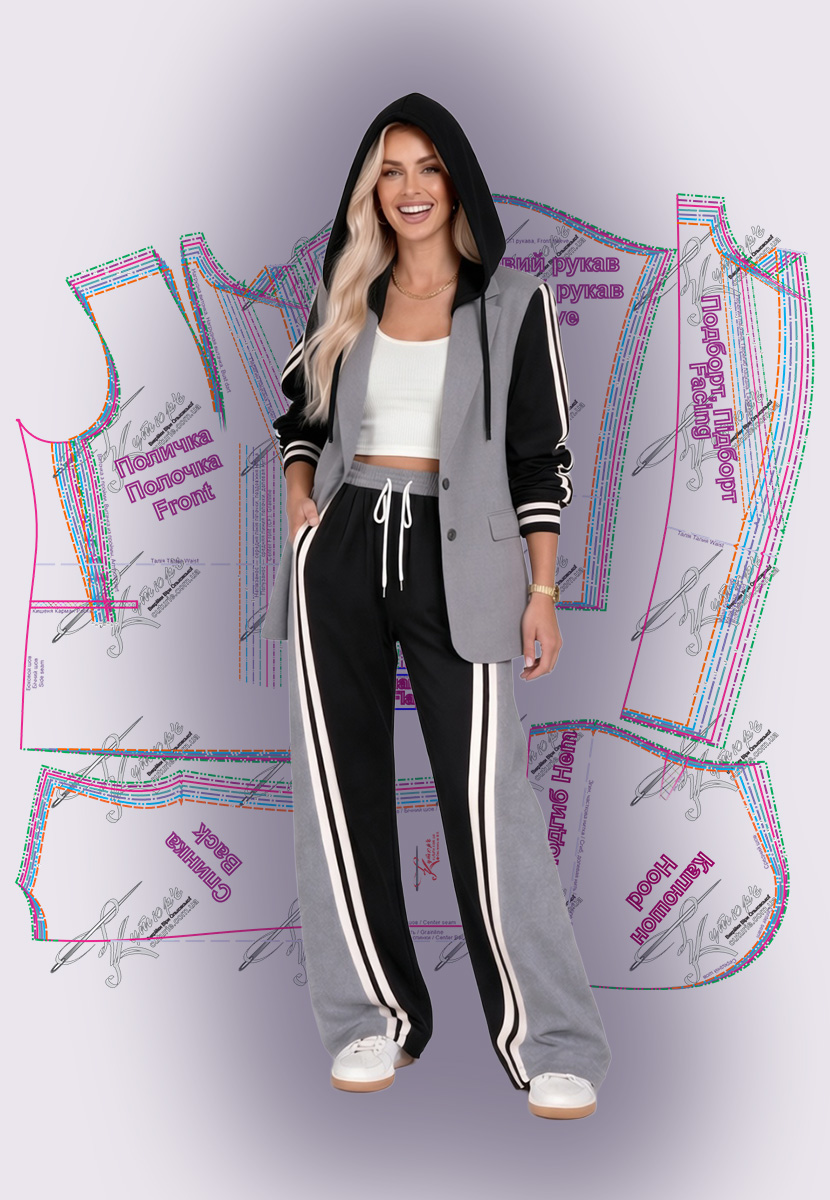Комплектация выкроек двубортного гибридного жакета с капюшоном
