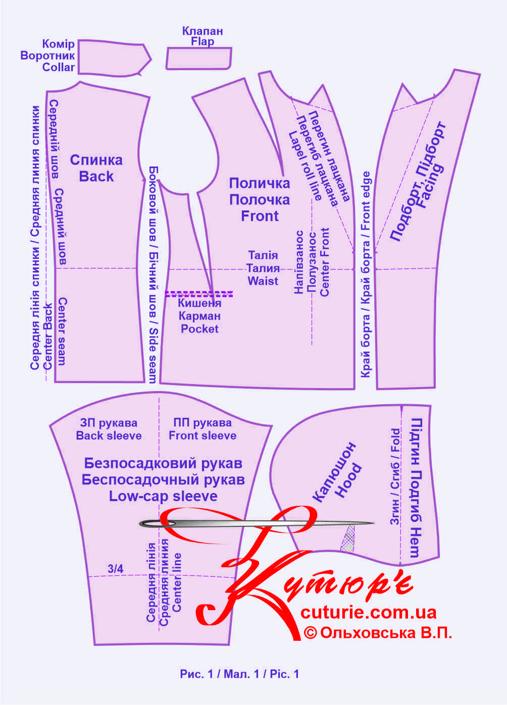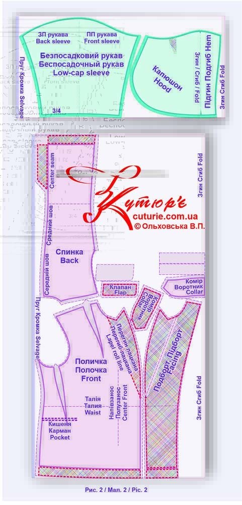 Раскрой беспосадочного рукава и капюшона также не требует долгих пояснений (рис2.).