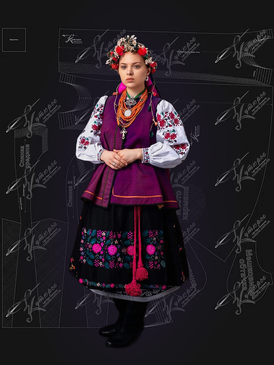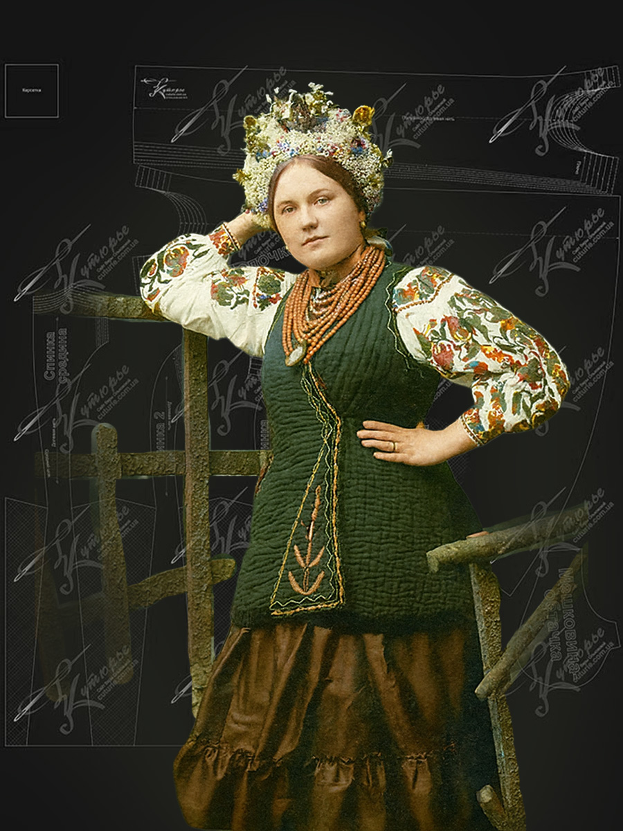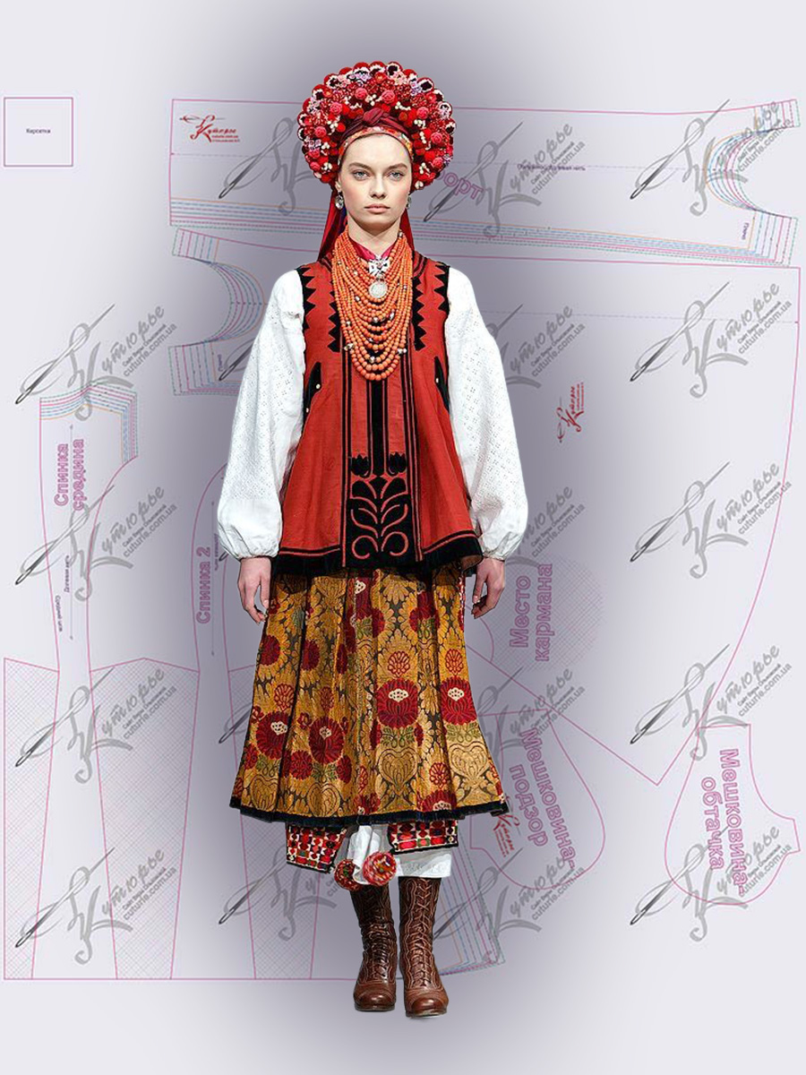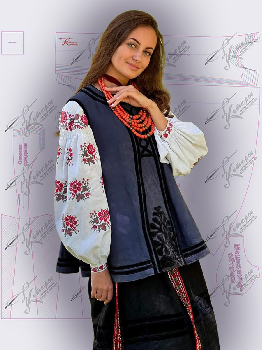 Конструкция фасона керсетки приближен к современному крою, но сохраняет основные элементы традиционной украинской керсетки.