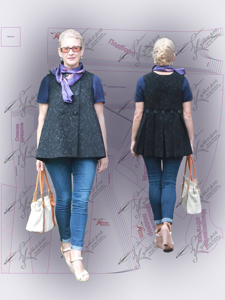 Фасон дополнен простым карманом типа «отрезной бочок».