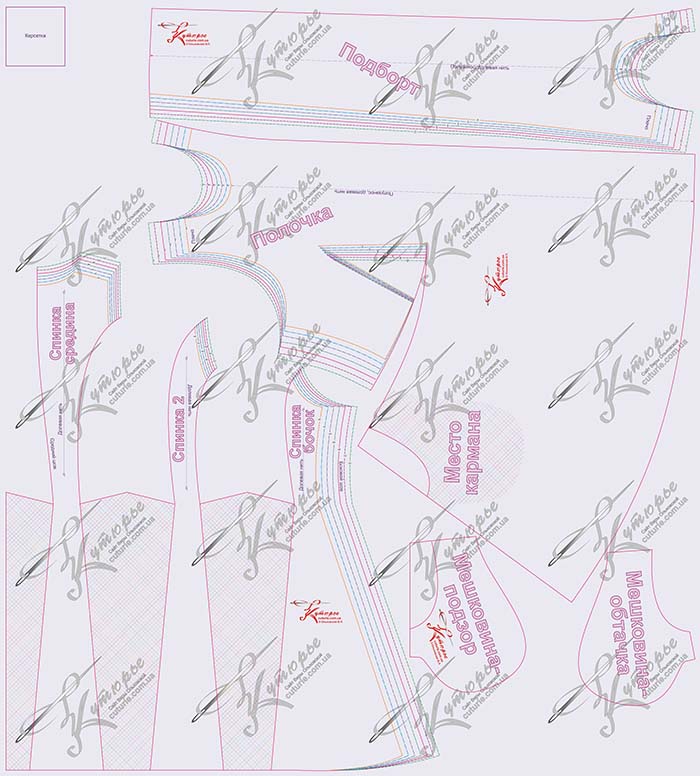 - Выкройки для обработки кармана: Мешковина-подзор и Мешковина-обтачка.