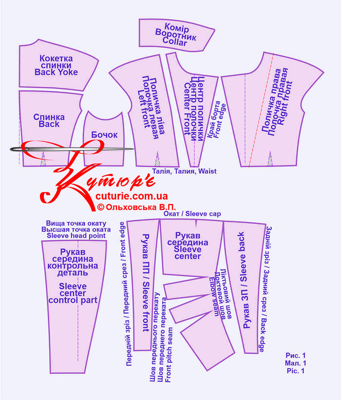 - Выкройки рукава: Рукав ПП, Рукав Средина, Рукав ЗП и Рукав средина контрольная деталь.
