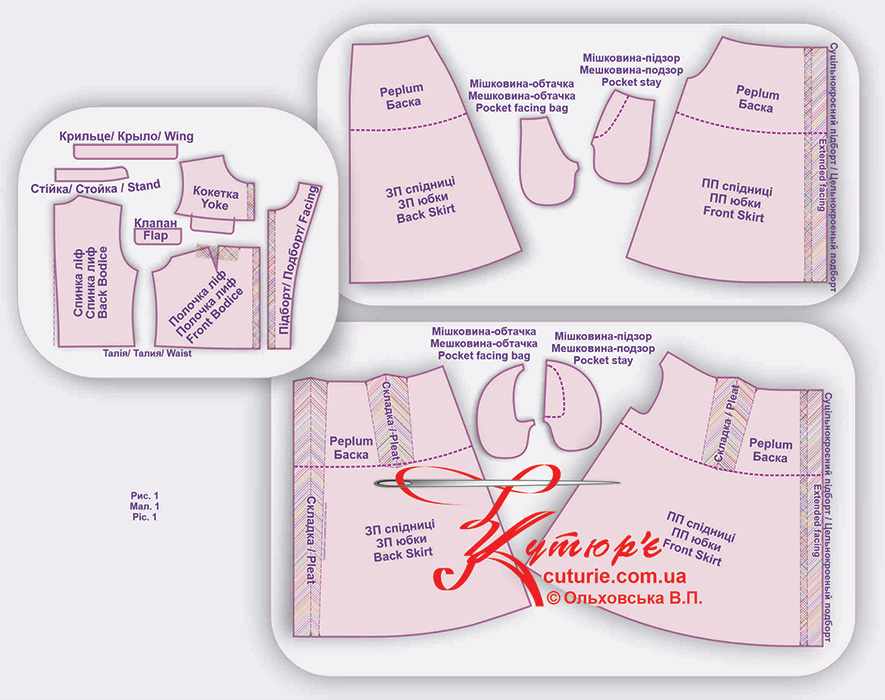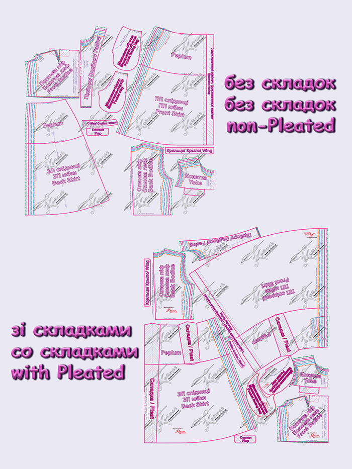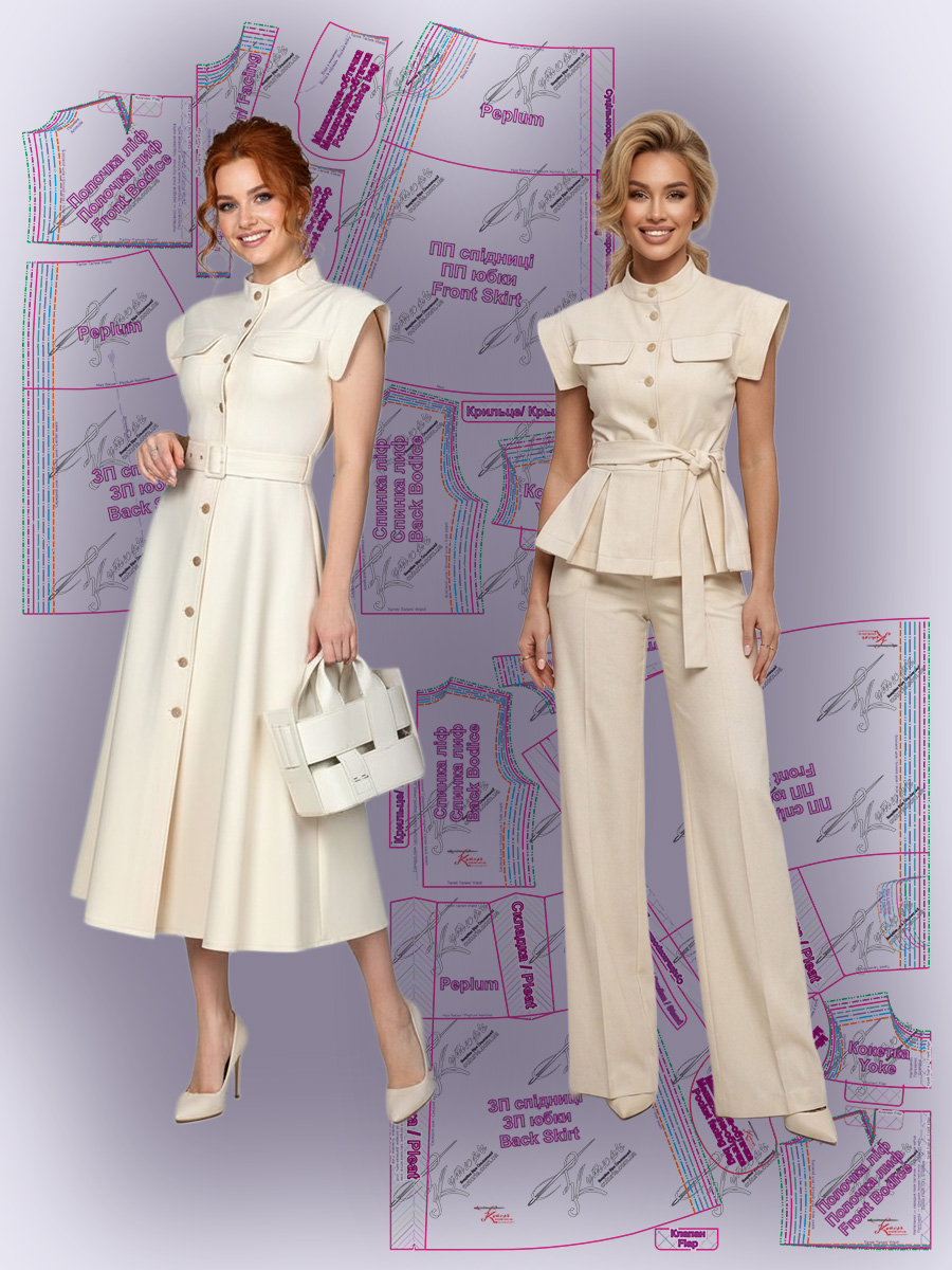 Комплектация выкроек платья и жакета с юбкой/баской со складками или без (рис. 1)