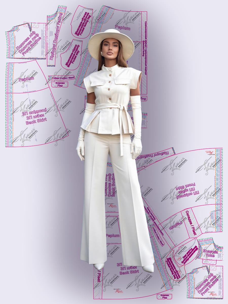 Выкройки платья и жакета с юбкой/баской со складками или без